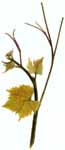 Triebspitzen: offen, weißlich hellgrün, stark behaart. Blatt: mittel, dunkelgrün, baslig, rundlich bis schwach dreilappig, andeutungsweise fünflappig, unterschiedlich starke Seitenbuchten, Blattrand stumpf gezahnt, Stielbucht v-förmig.
