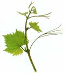 Triebspitzen: offen, weißlich bis hellgrün, starkwollig. Blatt: mittelgroß, dunkelgrün, baslig, schwach dreilappig, Blattrand stumpf gezahnt, Stielbucht v-förmig, Herbstfärbung gelb.